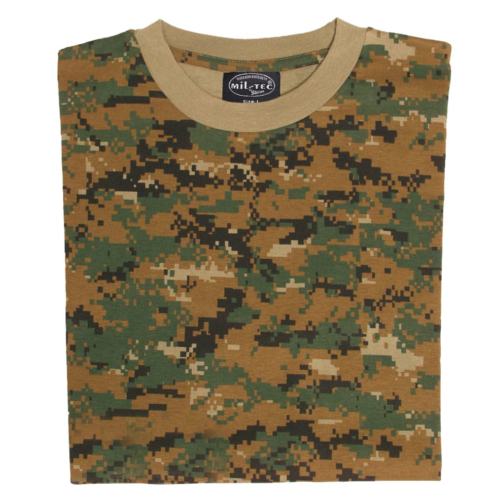 Mil-Tec T-Shirt Digital Woodland Camo Cotton Crew Neck Military S