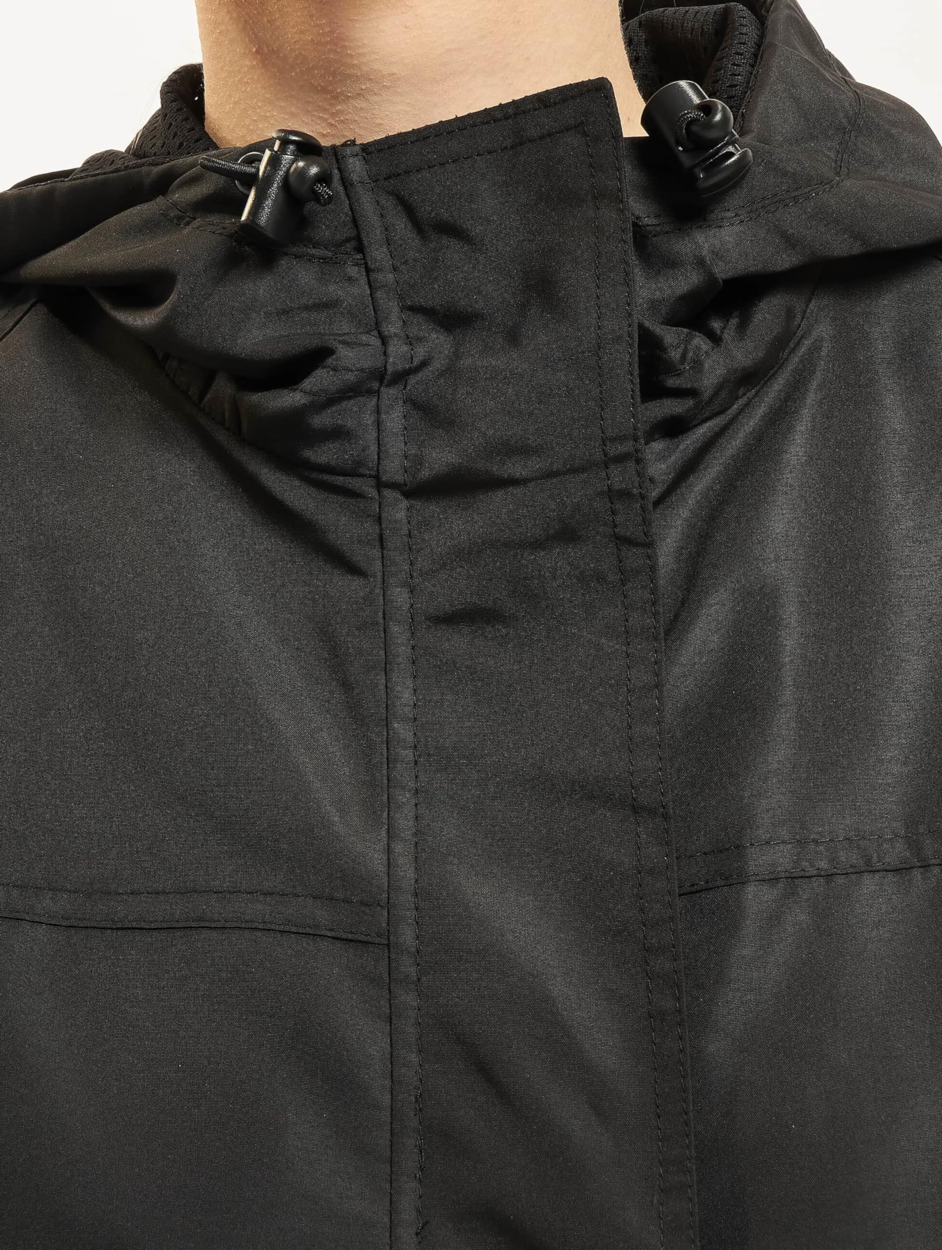 Functional details: Full-length zipper, adjustable hood, and cuffs