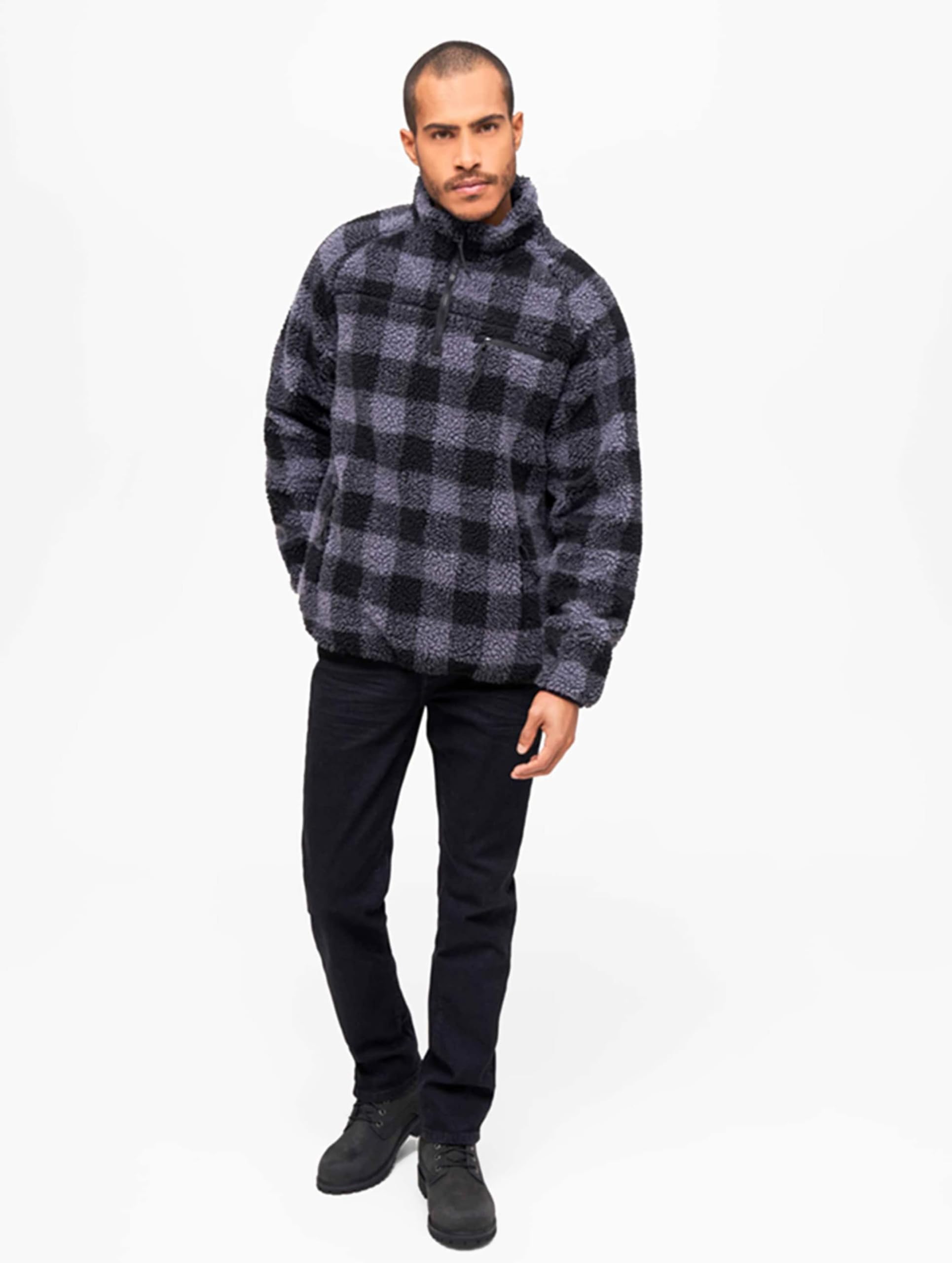Brandit Men’s Teddyfleece Troyer Black/Gray 5XL | Warm Pullover Outdoor Sweater