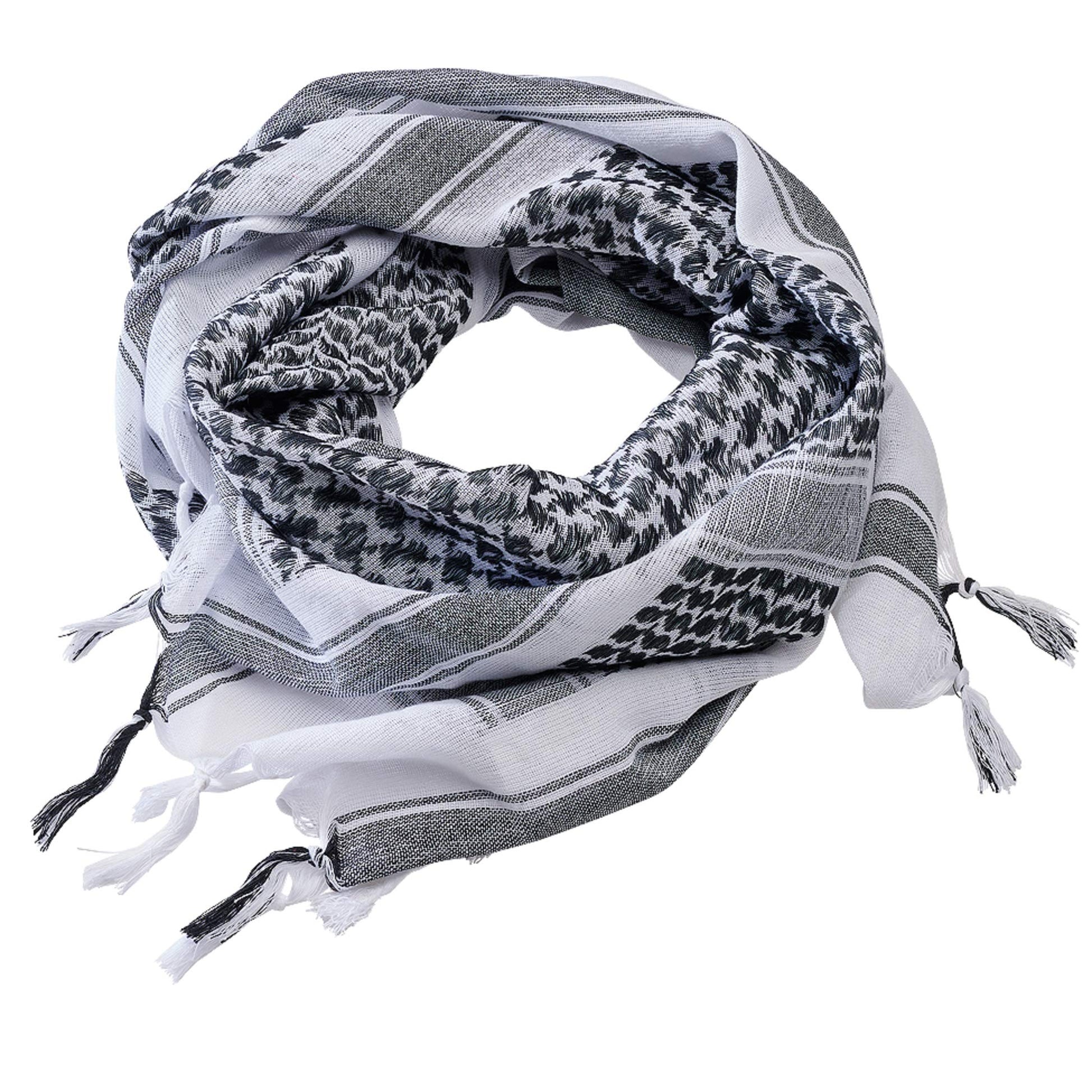 Brandit Shemag scarf, white black Keffiyeh, cotton tactical scarf, military Shemagh wrap, outdoor survival scarf, breathable desert scarf, traditional cotton head wrap, dust protection scarf.